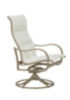 Inspired by the graceful curves of the beach, the Shoreline Padded Sling High Back Swivel Rocker boasts graceful arm supports and a sturdy well-crafted aluminum frame, which offers durability and ergonomic support. The Shoreline Padded Sling High Back Swivel Rocker features designer fabrics with padding for full-body comfort. These stylish chairs will have guests rocking in relaxation. The ergonomically designed high back of the dining chair adds another level of comfort to any outdoor dining experience. These stylish chairs will have guests rocking in relaxation. Pair this classic outdoor patio chair with a Tropitone® Dining Table for your own private seaside escape.